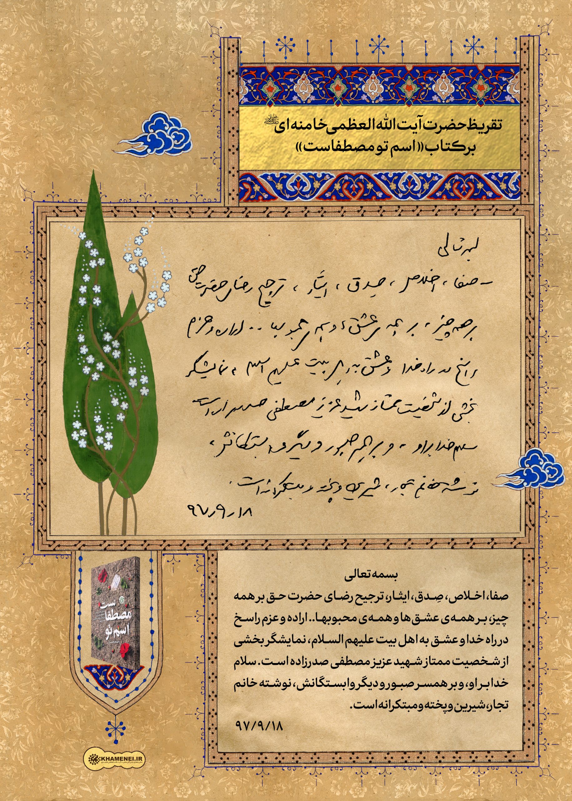 متن تقریظی مقام معظم رهبری (حفظه) بر کتاب اسم تو مصطفاست