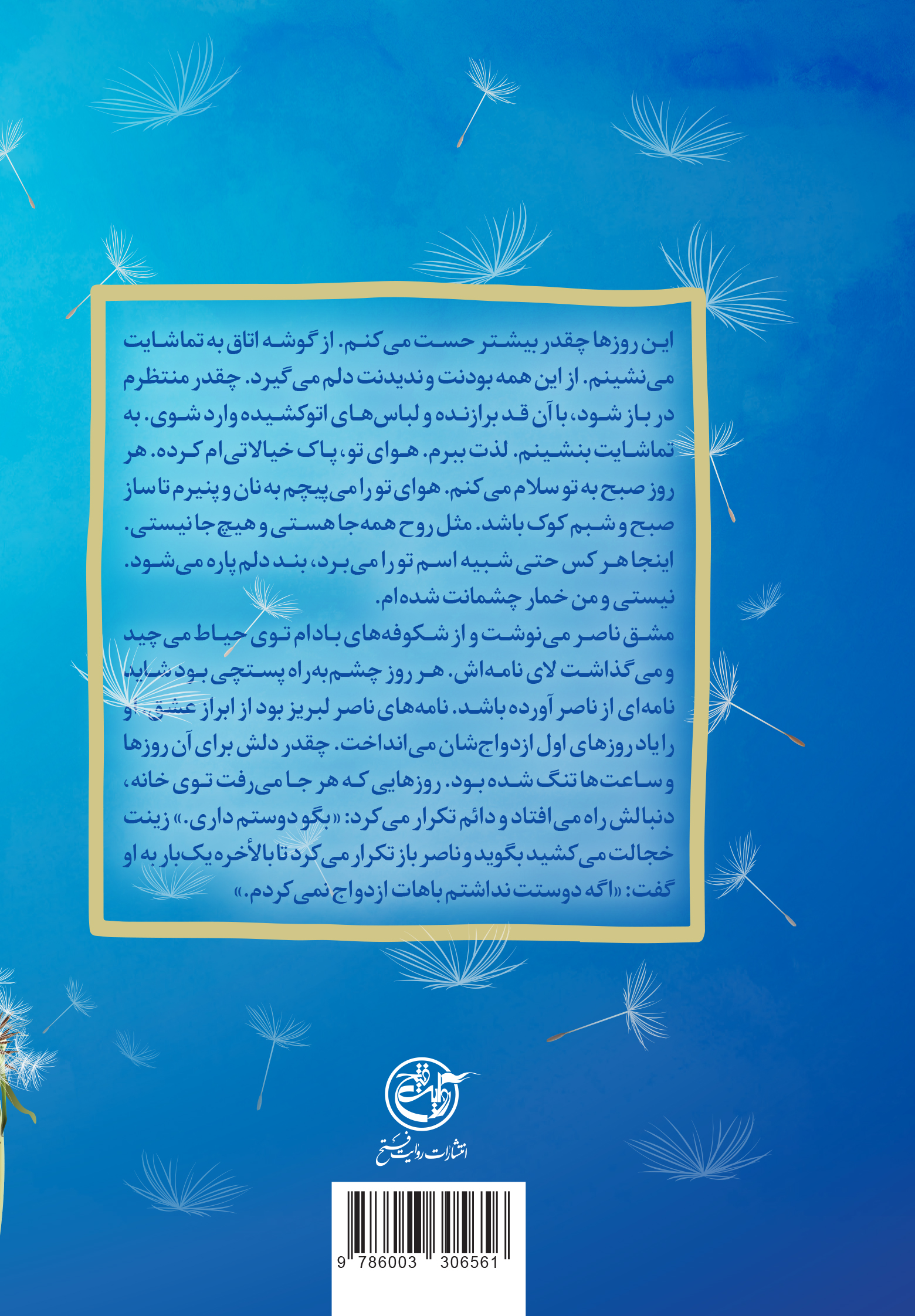 این روزها چقدر بیشتر حست می‌کنم. از گوشه اتاق به تماشایت می‌نشینم. از این همه بودنت و ندیدنت دلم می‌گیرد. چقدر منتظرم در باز شود با آن قد برازنده و لباس‌های اتو کشیده وارد شوی. به تماشایت بنشینم. لذت ببرم. هوای تو پاک خیالاتی‌ام کرده. هر روز صبح به تو سلام می‌کنم. هوای تورا می‌پیچم به نان و پنیرم تا ساز صبح و ئشبم کوک باشد. مثل روح همه جا هستی و هیج جا نیستی. اینجا هر کس حتی شبیه اسم تو را می‌برد بند دلم پاره می‌شود. نیستی و من خمار چشمانت شده‌ام.