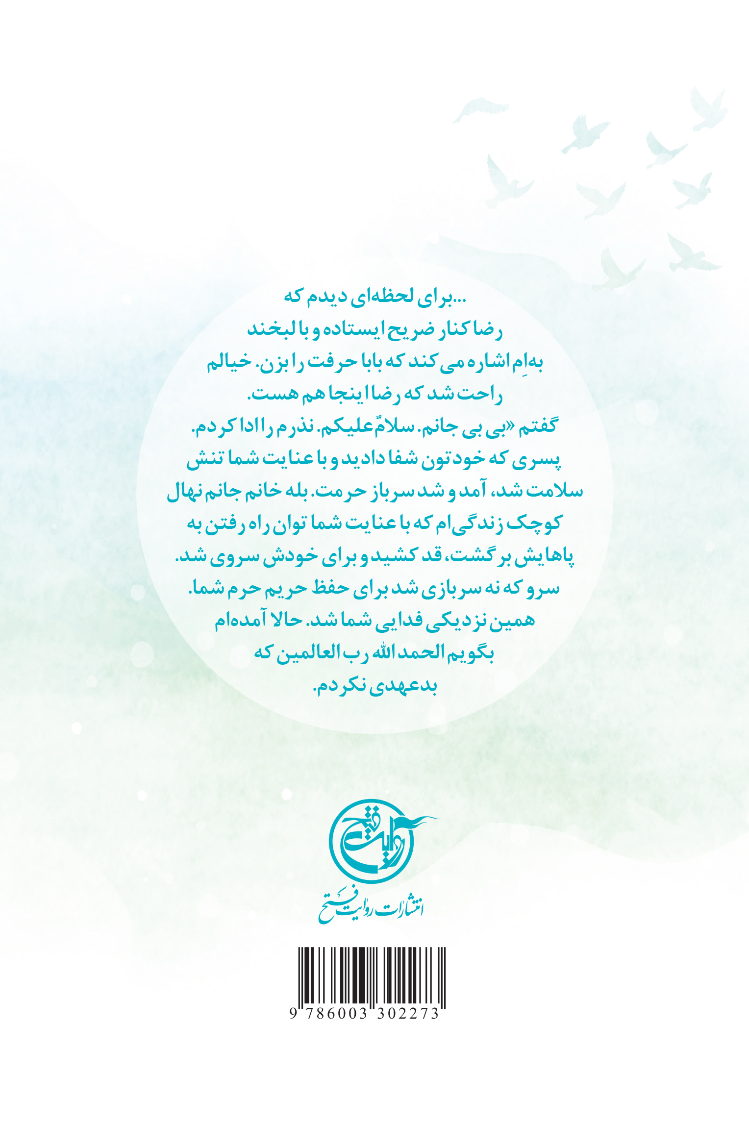برای لحظه‌ای دیدم که رضا کنار ضریح ایستاده و با لبخند به‌ام اشاره می‌کند که بابا حرفت را بزن. خیالم راحت شد که رضا اینجا هست. گفتم:« بی‌بی جانم سلام علیکم. نذرم را ادا کردم. پسری که خودتون شفا دادید و با عنایت شما تنش سلامت شد آمد و شد سرباز حرمت. بله خانم جانم نهال کوچک زندگی‌ام که با عنایت شما توان راه رفتن به پاهایش برگشت. قد کشید و برای خودش سروی شد.سرو که نه سربازی برای حفظ حریم حرم شما.